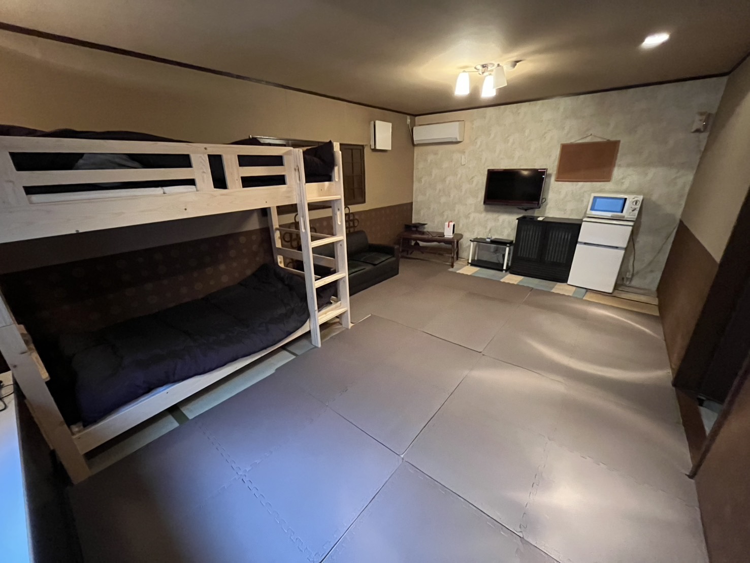 - テレビ、電子レンジ、冷蔵庫、エアコン、Wi-Fi完備。駐車場1台あり